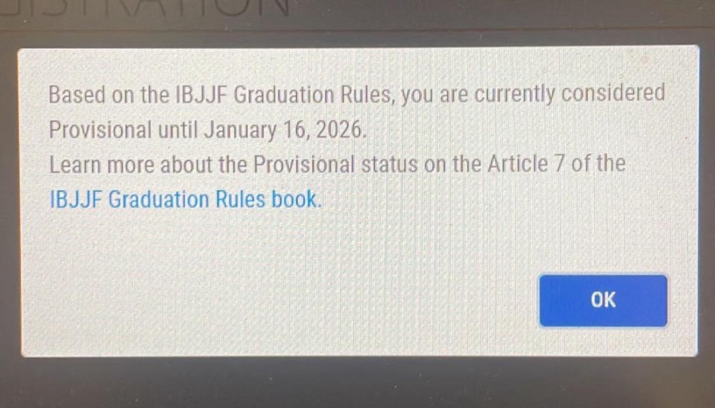 What does it mean to be a provisional Black Belt? I fall into a category of Brown Belt who has never had Purple Belt IBJJF registration. Why didn’t I register? I was promoted a few months before Minnesota went into lockdown, competing was basically done for that year and I couldn’t justify paying for my membership, and after lockdown expired, I had forgotten about IBJJF, and kinda didn’t care about competing with them.